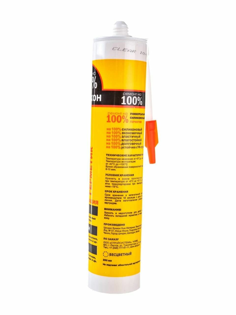 Герметик силиконовый Ремонт на 100%, универсальный, цвет: прозрачный, 260 мл
