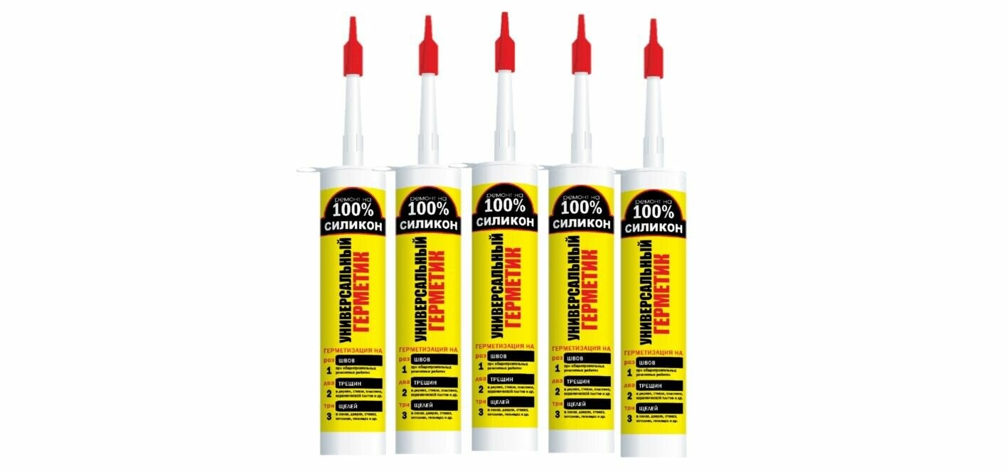 Комплект 5 штук, Герметик силиконовый унив. 260мл, бесцветный, ремонт на 100% H1619