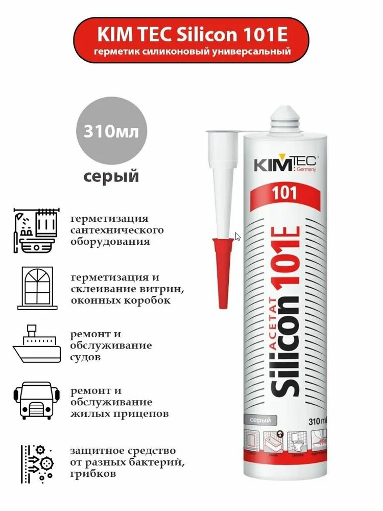 | Подробная комплектация | Герметик силиконовый универсальный 101Е «KIM TEC», серый, 310 мл 1 шт |