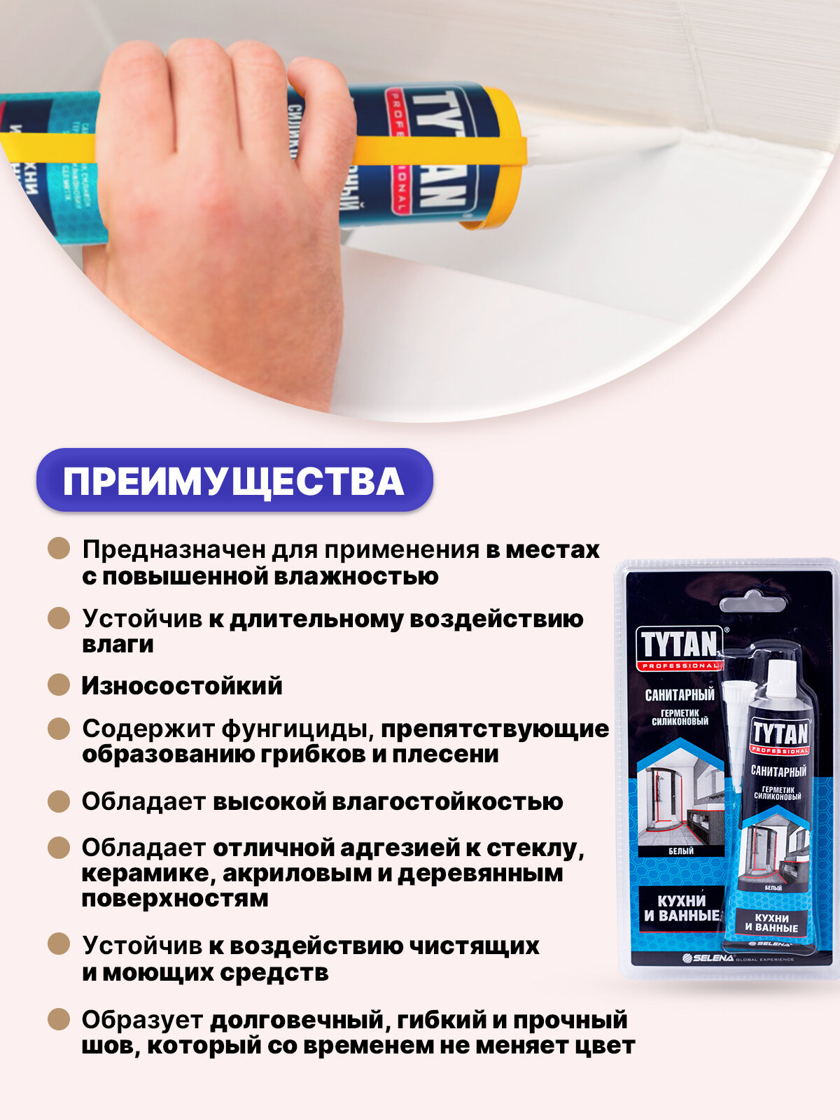 Силиконовый санитарный герметик Tytan Professional, 85 мл, белый