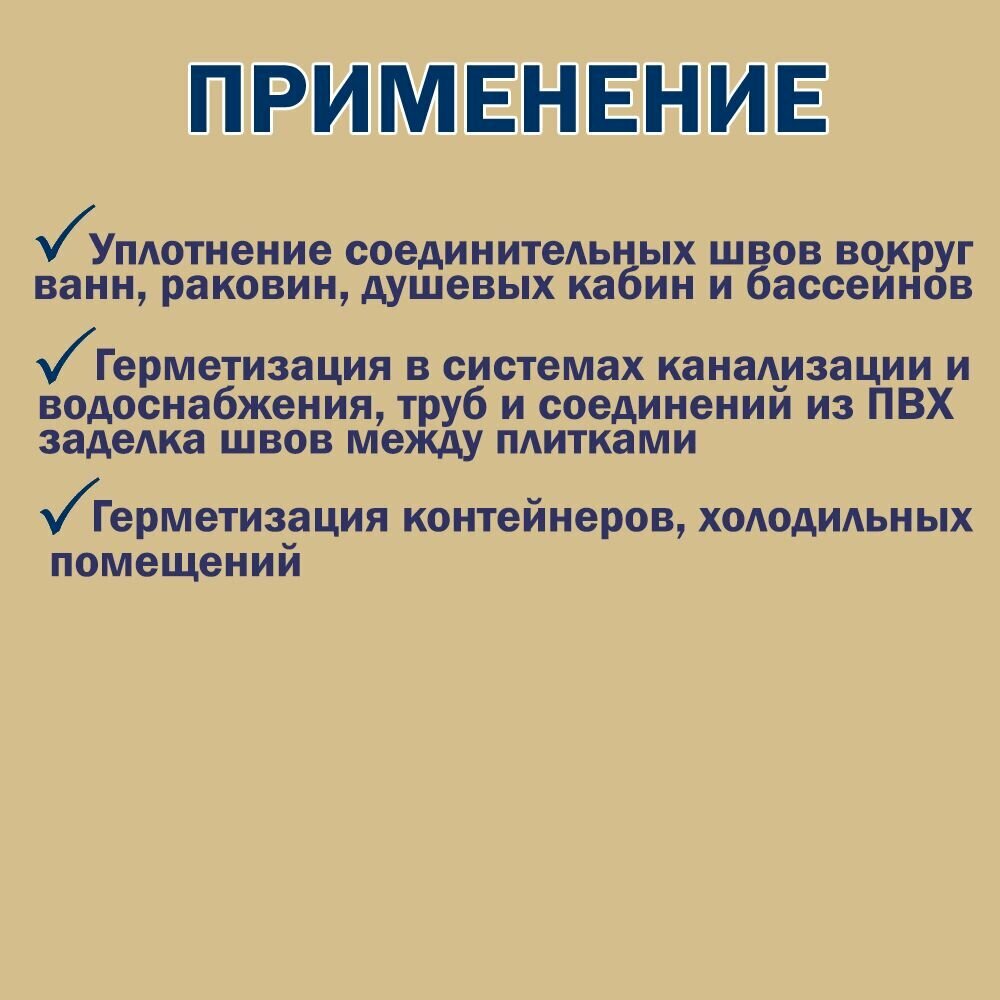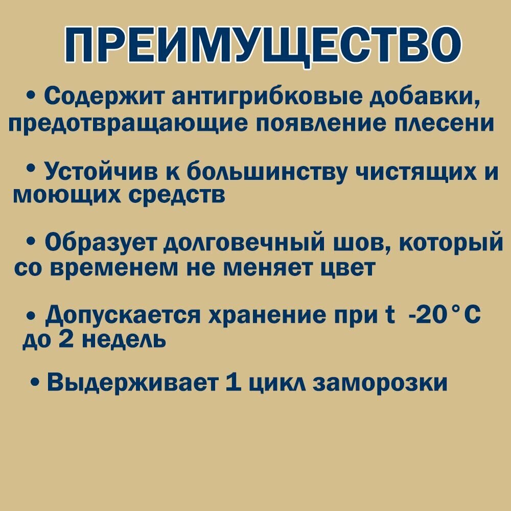 | Особенности | влагостойкость / возможность окрашивания / высокотемпературный / морозостойкий / огнестойкий / термостойкий / устойчивый к УФ-излучению / эластичность |