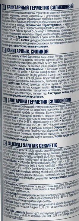 | Тип силиконового герметика | кислотный |