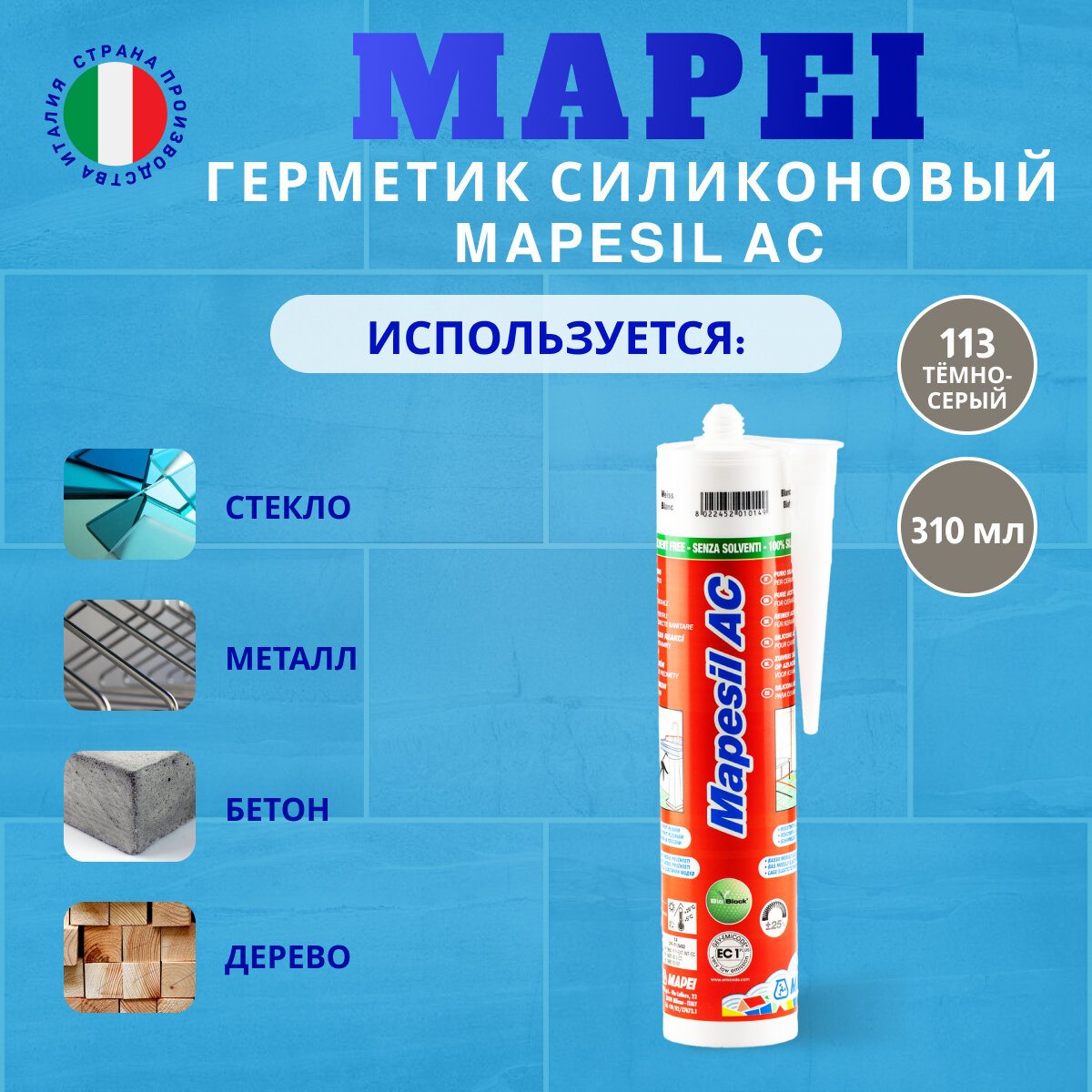 | Дополнительная информация | силиконовый герметик; клей-герметик; герметик для ванной; mapei герметик; мапеи герметик серый; мапеи мапесил; mapei универсальный герметик; mapei санитарный герметик; |