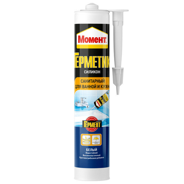 Момент Санитарный для ванной и кухни герметик белый (0,28л) / MOMENT Санитарный для ванной и кухни герметик силиконовый белый (280мл)