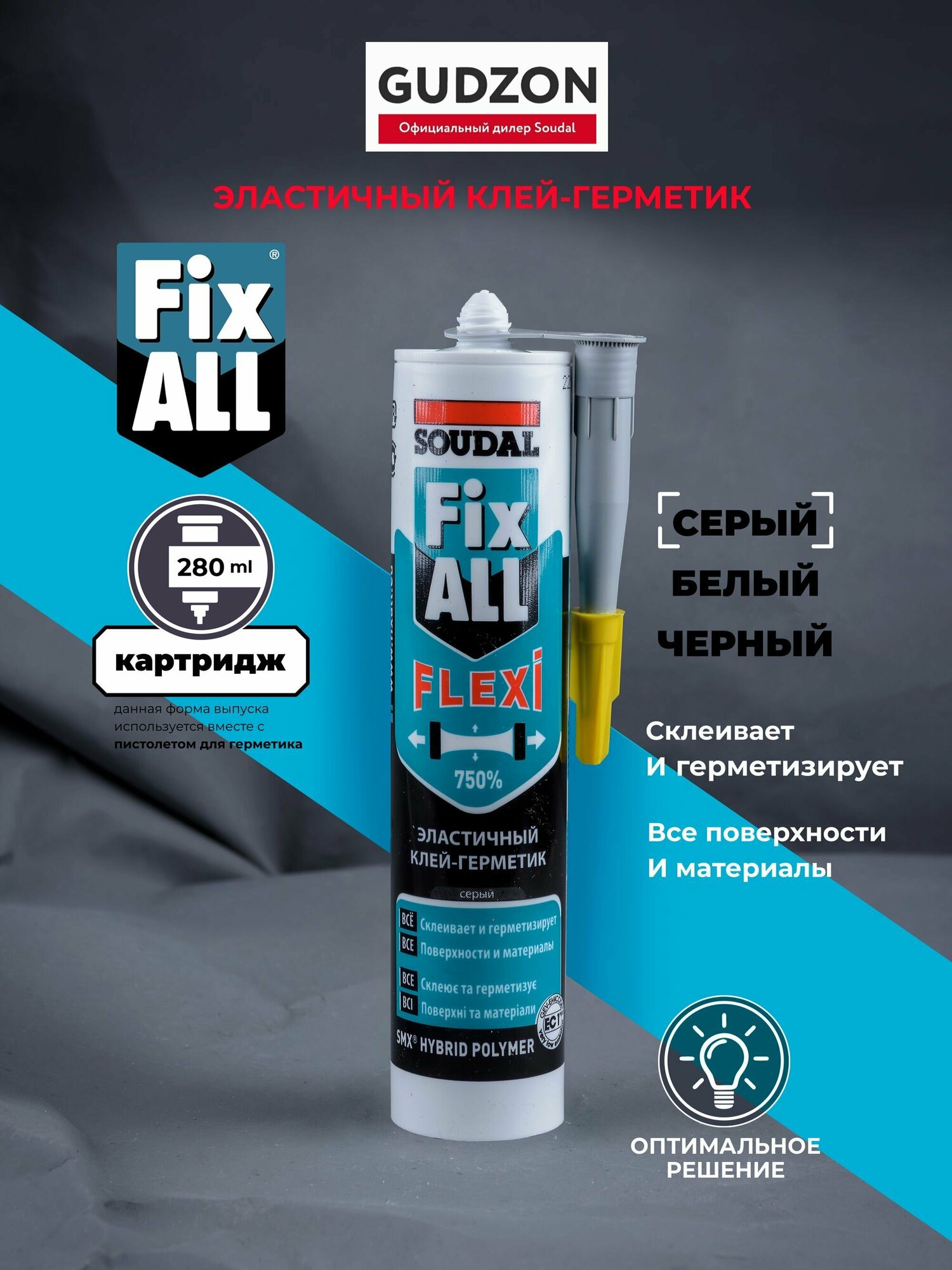SOUDAL FIX ALL FLEXI гибридный клей-герметик 290мл серый