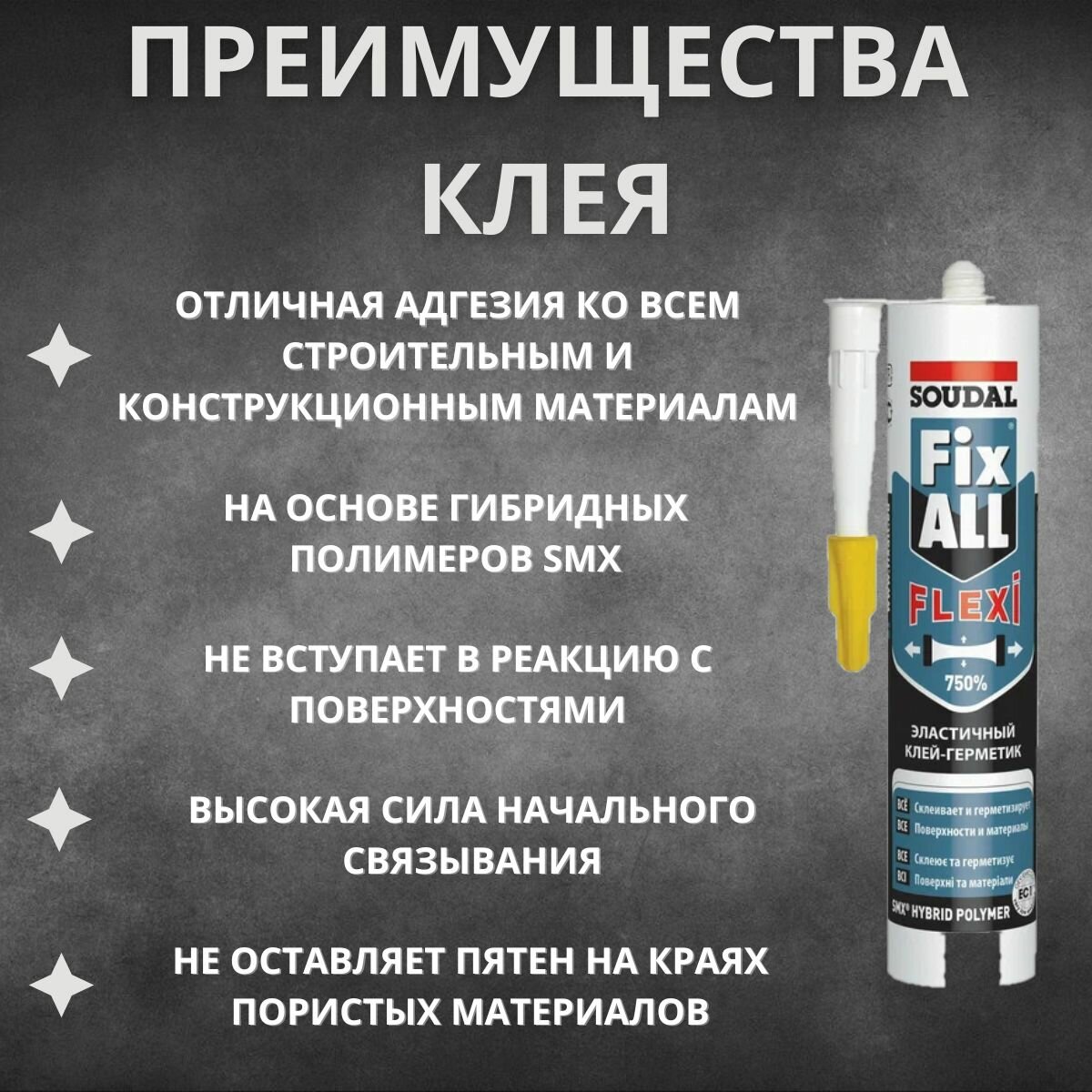 SOUDAL FIX ALL FLEXI гибридный клей-герметик 290мл серый
