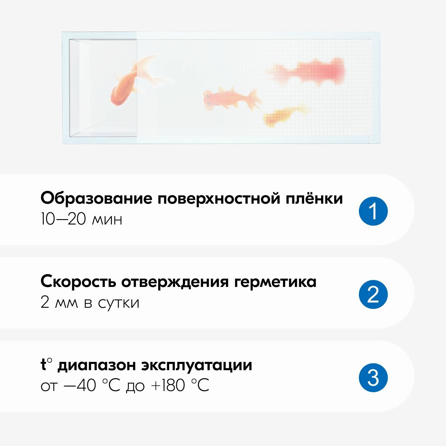 | Дополнительная информация | быстро покрывается плёнкой; тиксотропный, не растекается и не сползает по шву; время образования поверхностной плёнки — 15–30 мин., скорость отверждения герметика — 2 мм в сутки (при температуре +23°С и относительной влажности 50% |