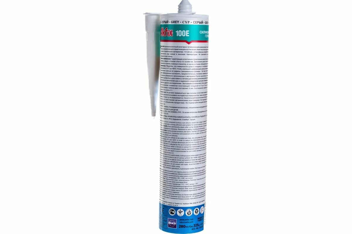 100E Универсальный силиконовый герметик Akfix, 280 мл, серый