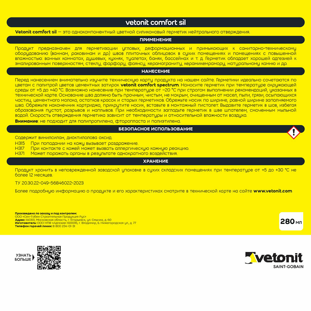 | Подробная комплектация | VETONIT СOMFORT SIL 280 мл -1 шт. |