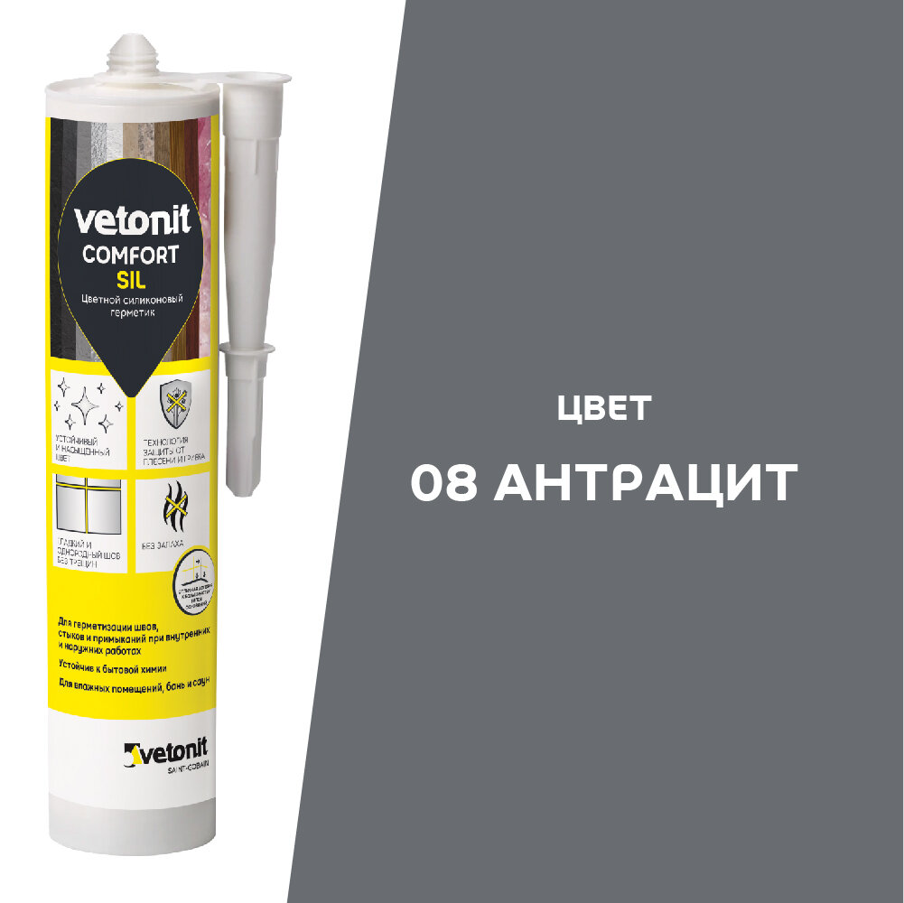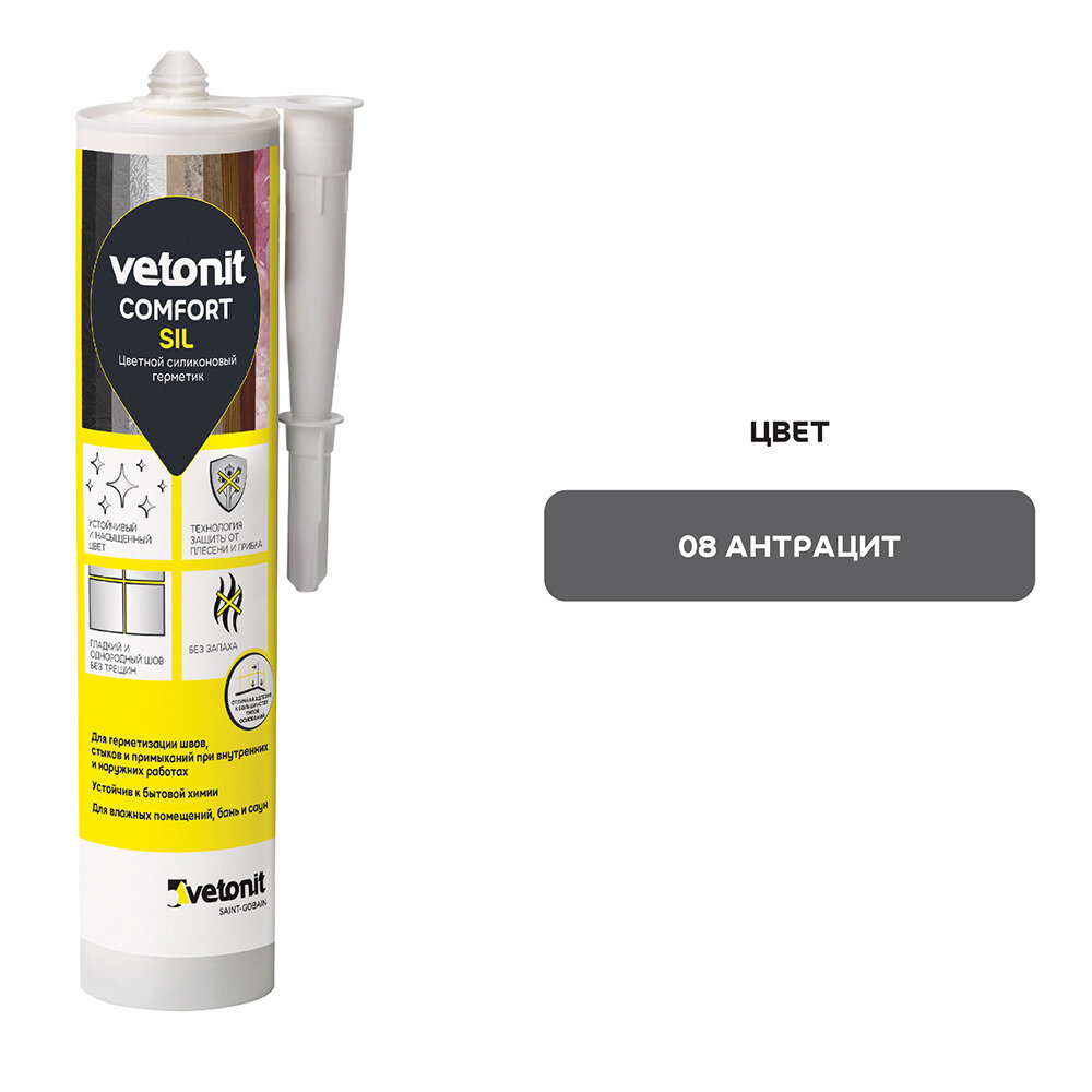Купить Цветной силиконовый герметик Vetonit comfort sil 08 антрацит (чёрый), 280 мл