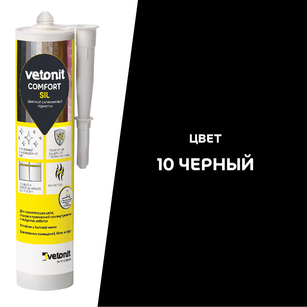 Купить Цветной силиконовый герметик Vetonit comfort sil 10 чёрный, 280 мл