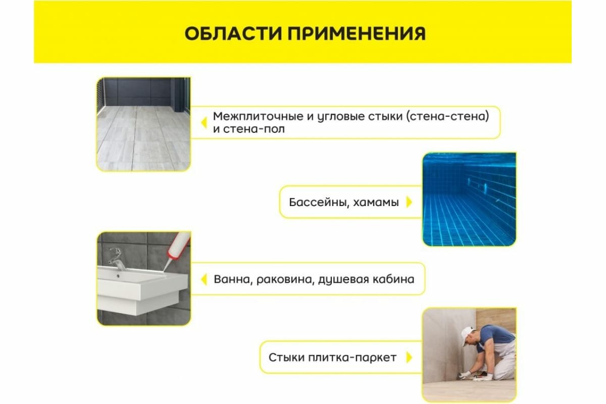 | Особенности | влагостойкость / возможность окрашивания / морозостойкий / термостойкий / устойчивый к УФ-излучению / эластичность |