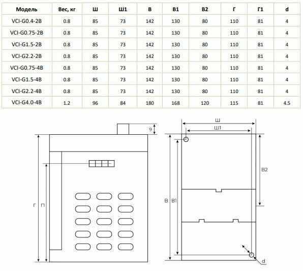 Частотный преобразователь INSTART VCI-G1.5-2B Вход:220В, 1фаза; Выход: до230В , 0-320 Гц, 3фазы интересное:
