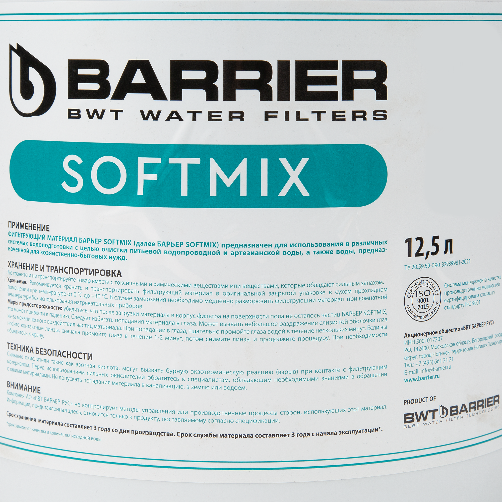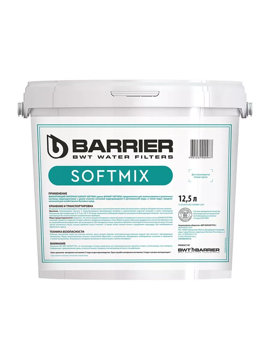 БАРЬЕР ультрамикс А, фильтрующий материал для системы очистки воды из скважины, при незначительном содержании органических соединений, ведро 12,5 л