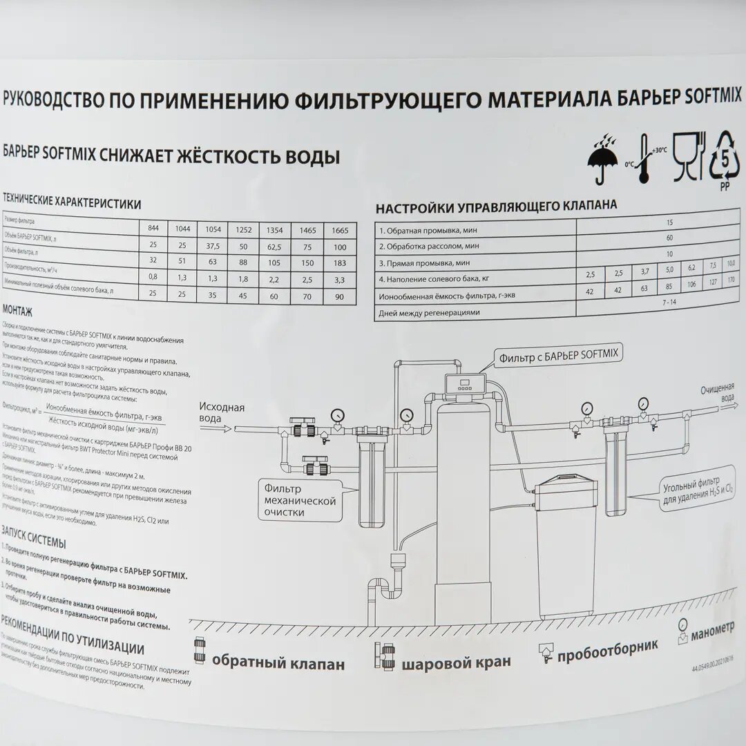 | Дополнительная информация | Применяется для очистки воды с повышенным содержанием железа и/или жесткости и перманганатной окисляемостью не более 10 мгО/л в составе коттеджных систем. |