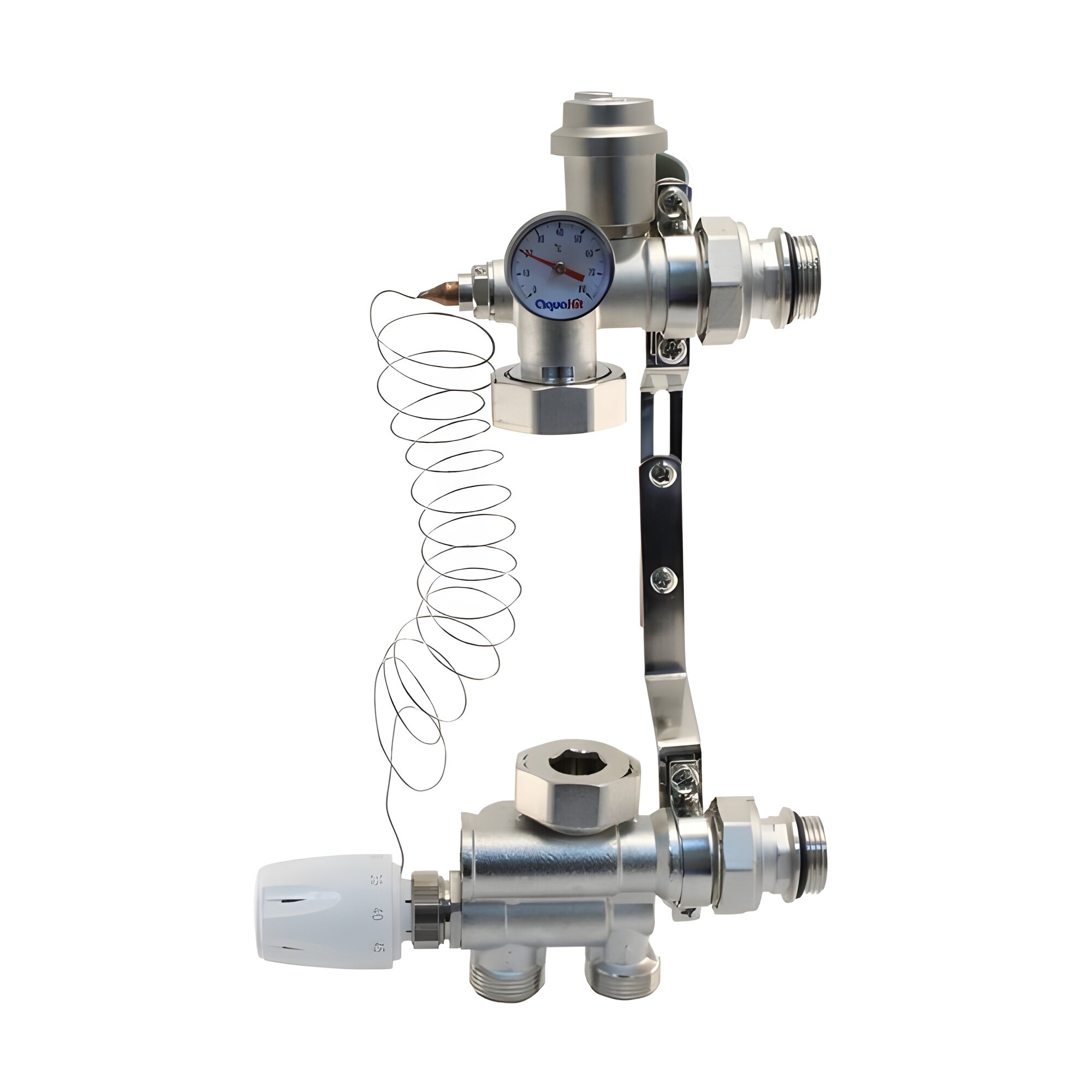 | Комплектация | насосно-смесительный узел - 1шт.; прокладки для подключения насоса - 1 пара; термометр биметаллический - 1шт.; кронштейн с регулировкой по высоте - 1шт.; термостатическая жидкостная термоголовка с гильзой -1шт.; автоматический воздухоотводчик - 1шт.; паспорт - 1шт.; упаковка - 1шт |