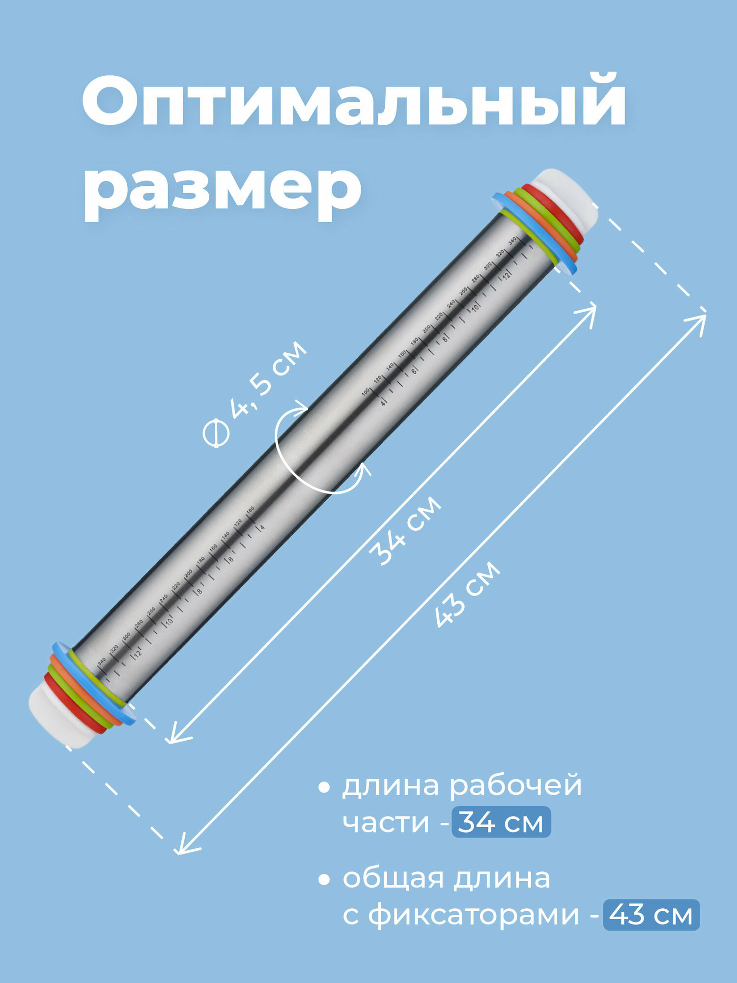 Скалка для теста профессиональная Sugar Day металлическая с ограничителями интересное: