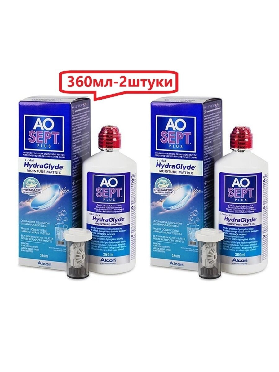 AOSEPT PLUS HYDRAGLYDE пероксидная система (2x360 ML + 2 контейнера) для ухода за контактными линзами
