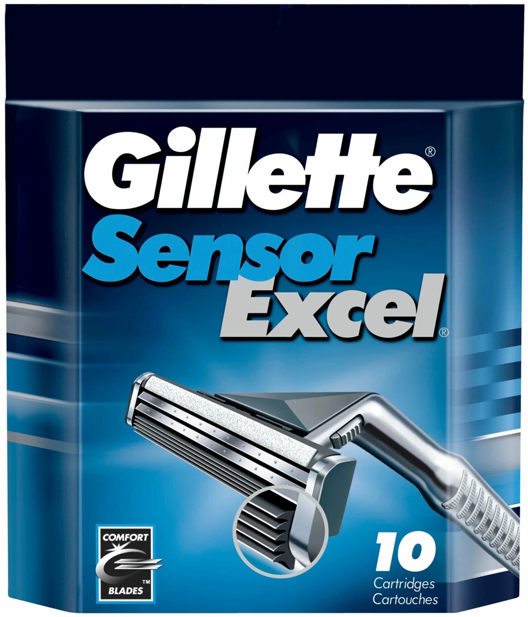 Сменные кассеты Gillette "SensorExcel", с двойными лезвиями, для гладкого бритья, 10 шт.