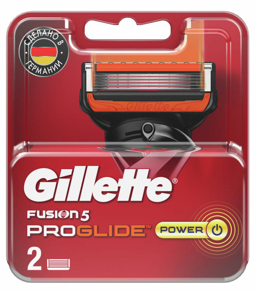 Gillette Fusion 5 ProGlide Power Сменные кассеты для бритья с 5 лезвиями, мужские, 2 шт