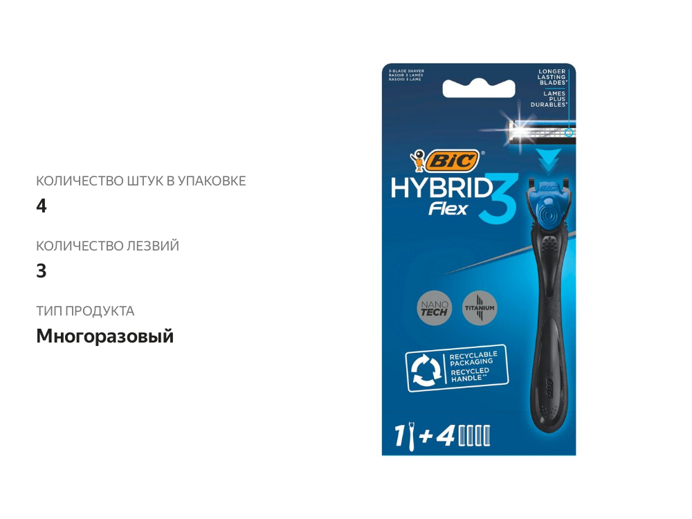 Бритвенный станок Bic Flex 3 Hybrid, сменные кассеты 4 шт. интересное: