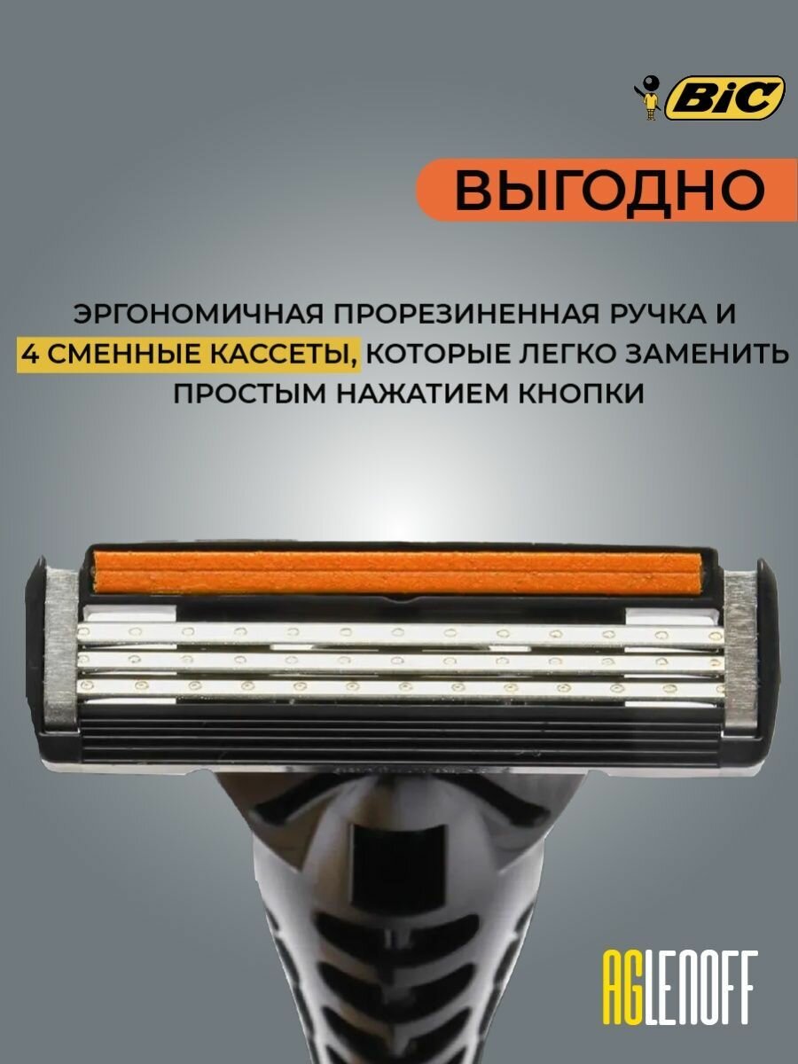 Бритва мужская, BIC Hybrid 3 Flex, 1 ручка и 4 сменные кассеты