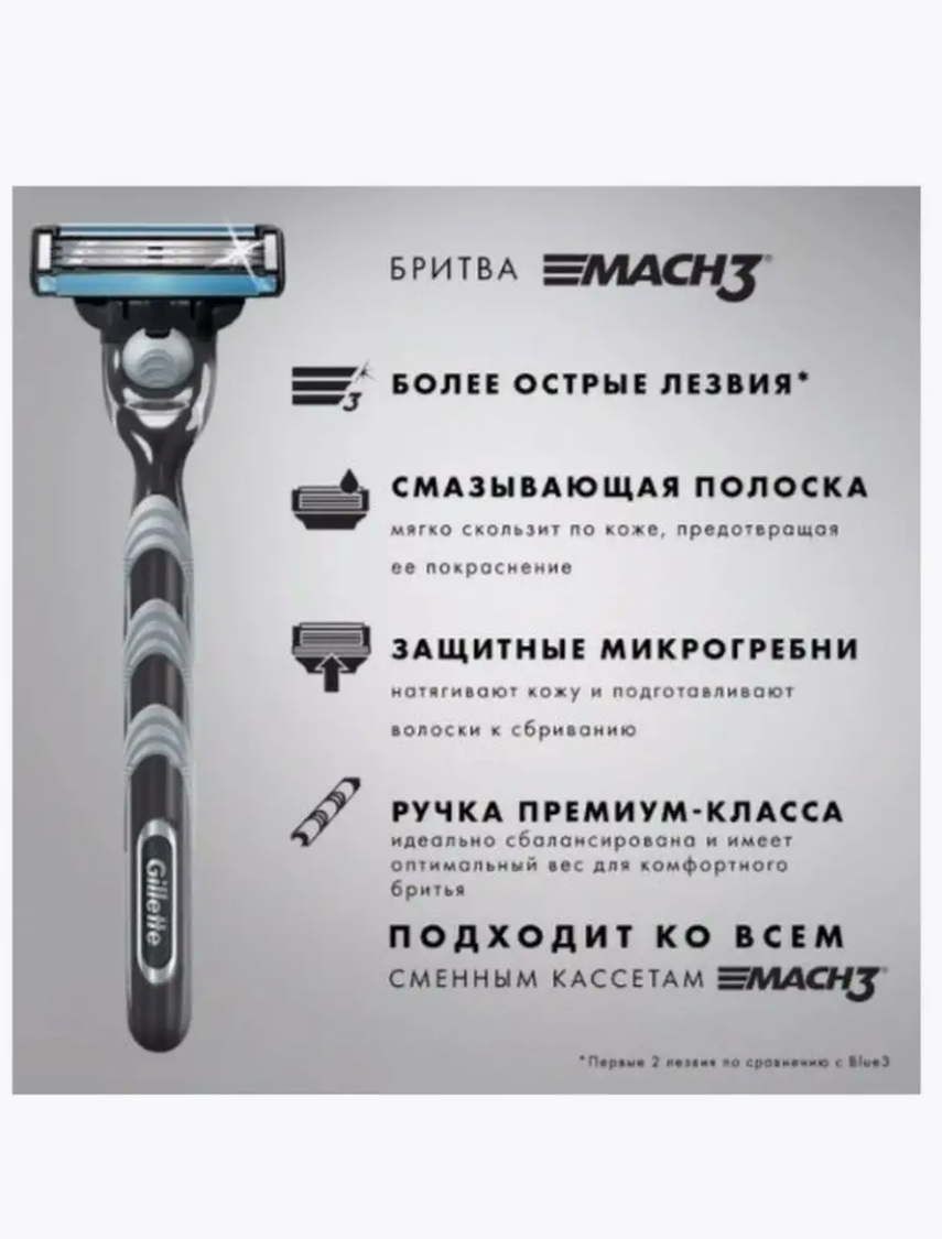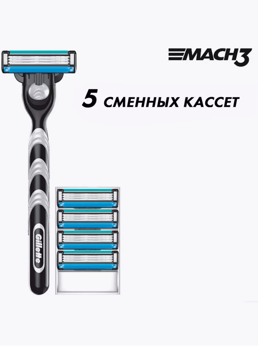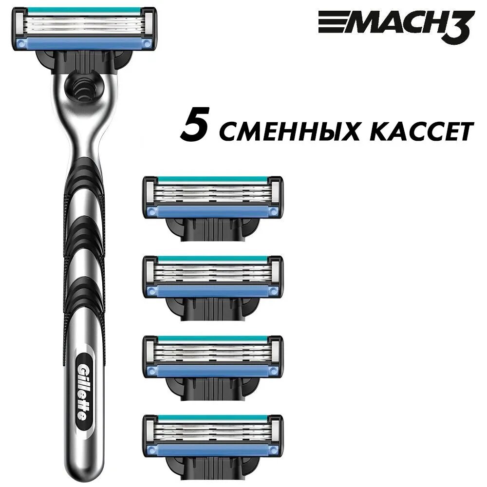 Бритвенный станок Gillette MACH3 с 5 сменными кассетами интересное: