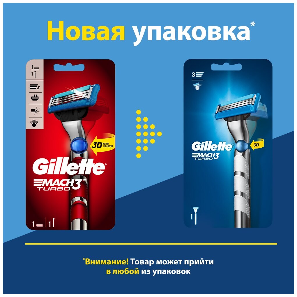 Многоразовый бритвенный станок Gillette Mach3 Turbo технология 3D Motion, серебристый, 1 шт.