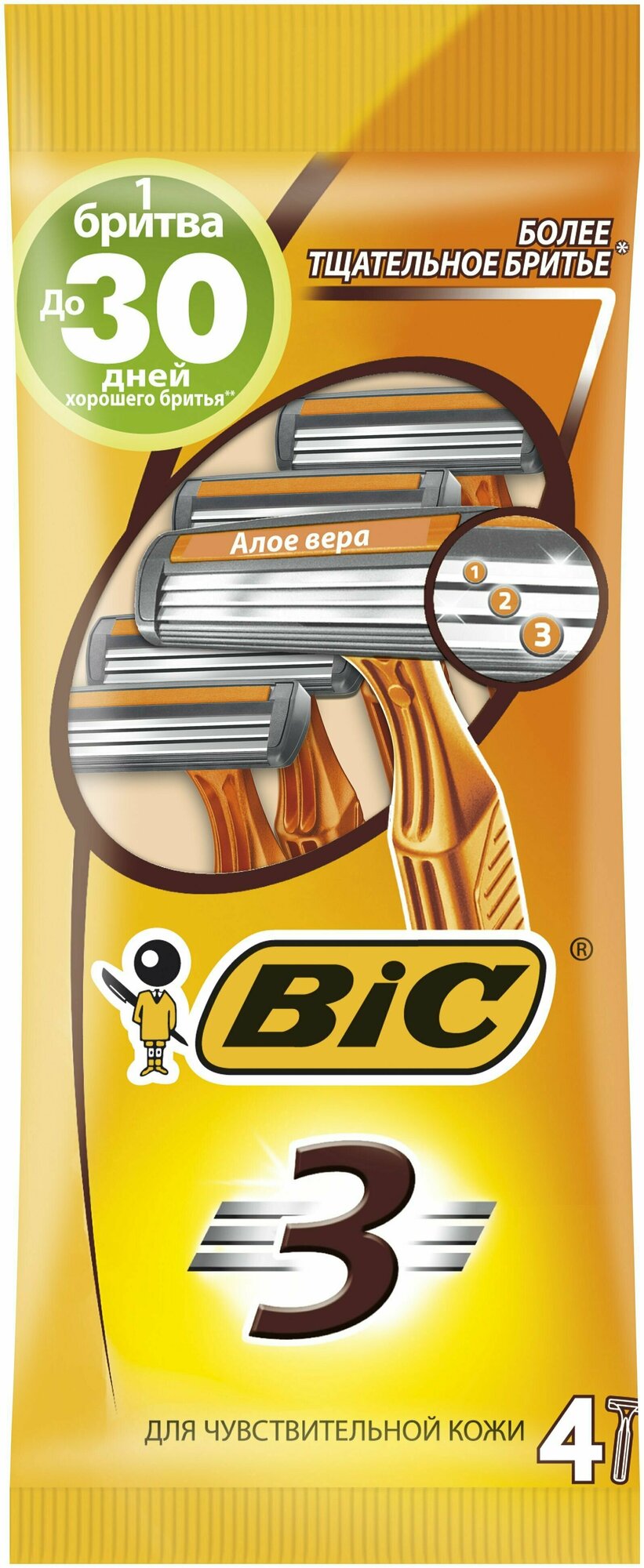 BIС (БИК) Бритва мужская одноразовая BIC 3 Sensitive для чувствительной кожи, 4шт
