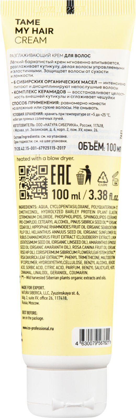 ICE Professional Tame My Hair Крем Разглаживающий, 100мл, Natura Siberica интересное: