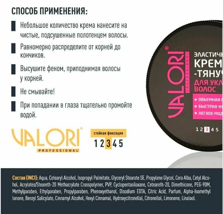 Эластичный крем - тянучка для укладки волос Valori Professional 75мл 3130504 интересное: