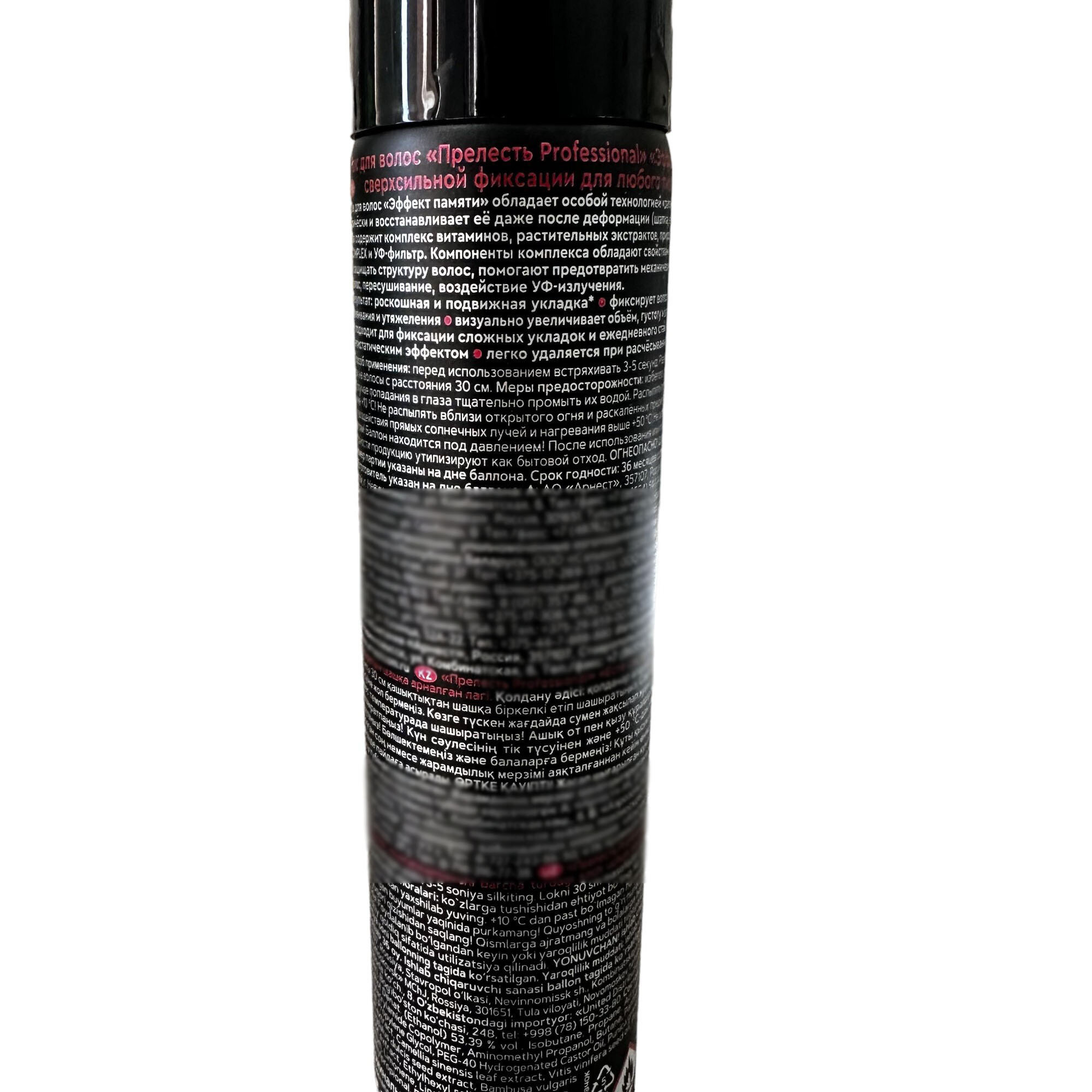 | Дополнительная информация | Прелесть Professional Лак для волос Эффект памяти, экстрасильная фиксация, 300 мл |