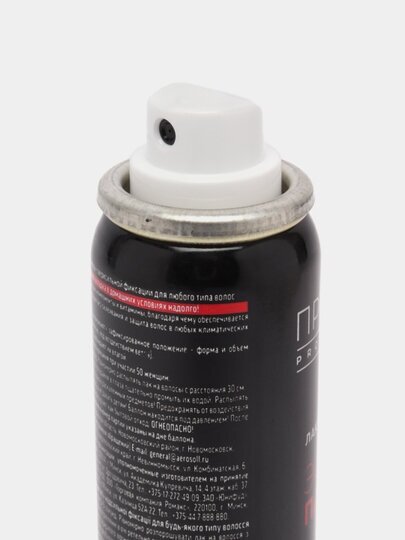 | Способ применения | перед использованием встряхнуть баллон в течение 3 - 5 секунд. Равномерно распылять лак на волосы с расстояния 30 см |