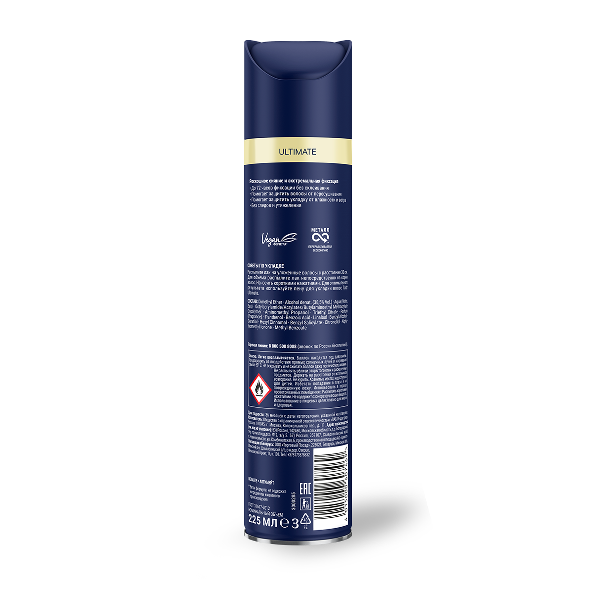 Лак для волос тафт Ultimate, экстремальная фиксация, 225мл