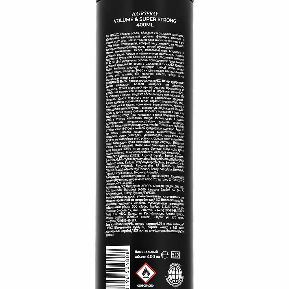 Купить Лак для волос KENSUKO для придания объема волосам сверхсильной фиксации, 400 мл
