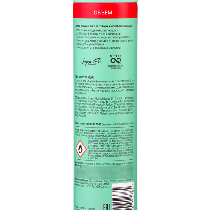 TAFT Объем Лак для волос, мегафиксация 225мл интересное:
