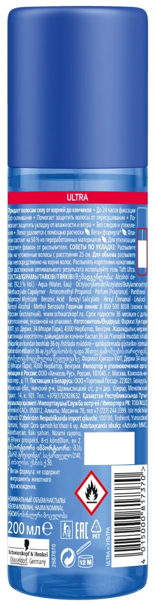 Taft Жидкий лак для волос Ultra для моделирования, экстрасильная фиксация, 200 мл