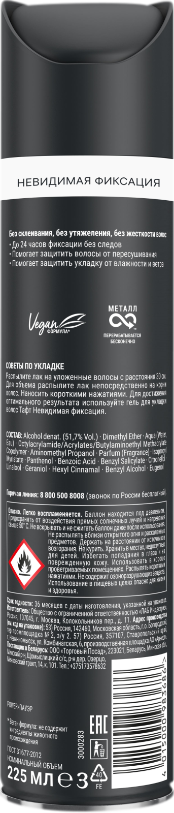 Тафт 225 мл Лак для волос Power Невидимая фиксация, мегафиксация интересное: