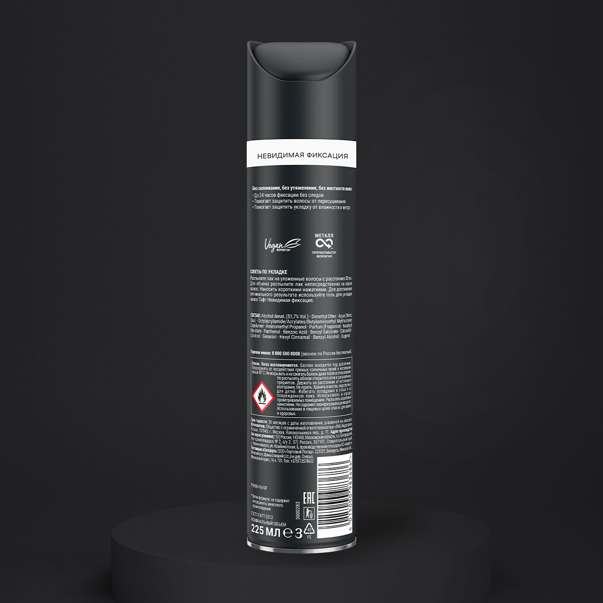 | Способ применения | распыли лак на волосы с расстояния 30 см короткими нажатиями. Для придания дополнительной фиксации нанеси на отдельные пряди волос |