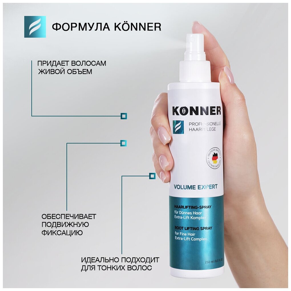 KONNER Cпрей для волос, спрей для прикорневого объема, для укладки, несмываемый уход, с кератином, 250 мл