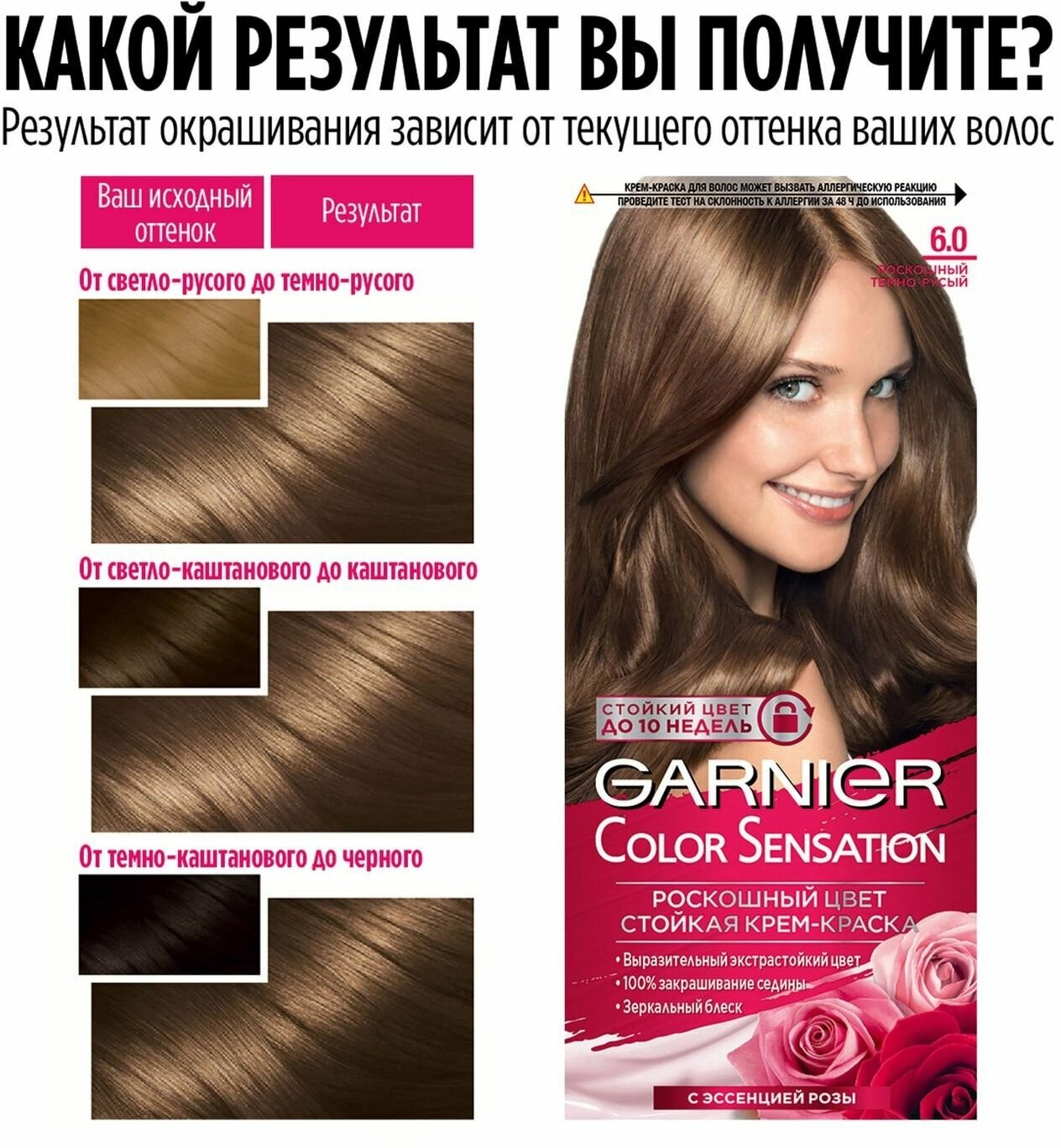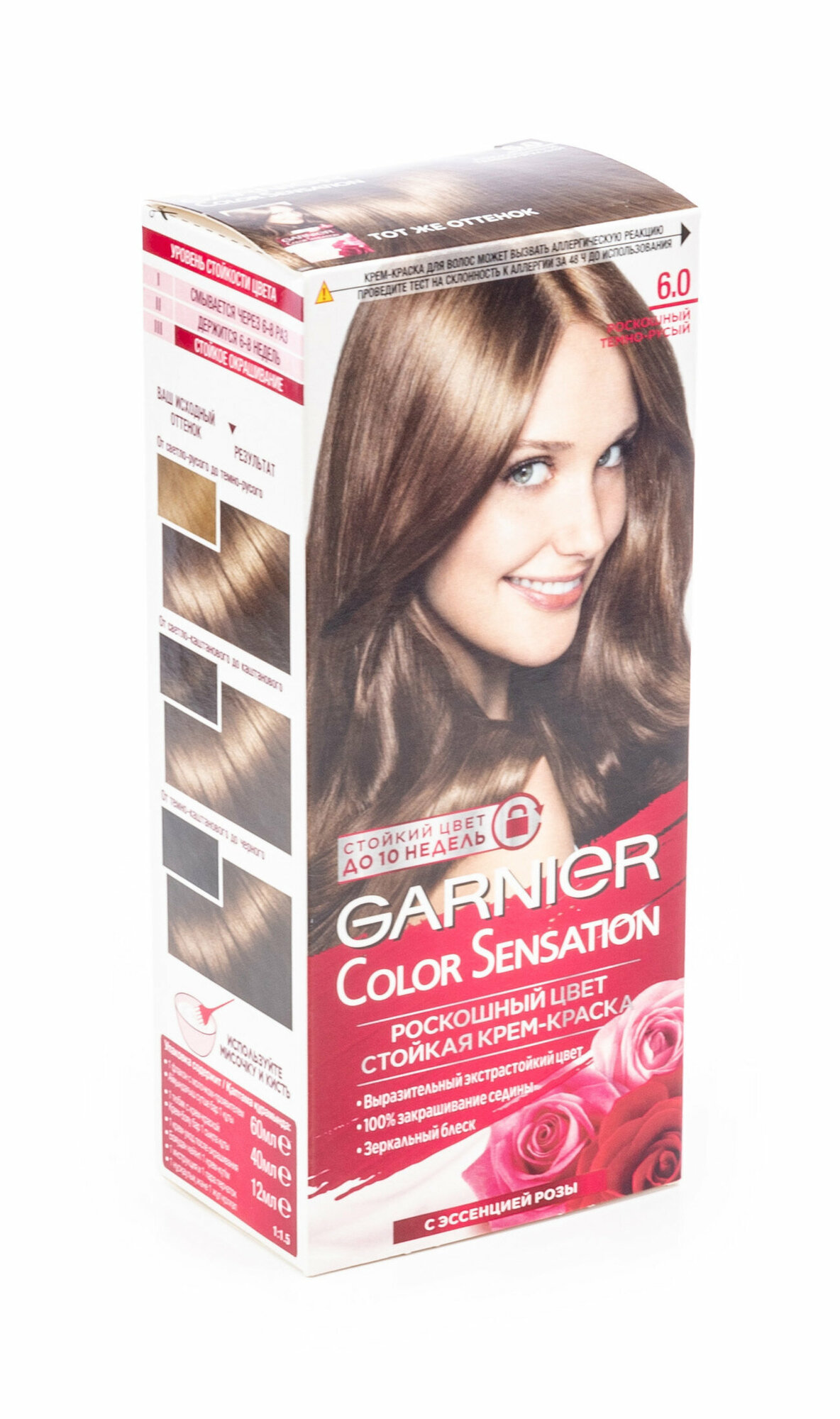 Ниже Вы можете прочитать отзывы на Garnier Стойкая крем-краска для волос "Color Sensation, Роскошь цвета", оттенок 6.0, Роскошный темно-русый, ознакомится с подробными характеристиками, посмотреть интересные обзоры и фотографии на Garnier Стойкая крем-краска для волос "Color Sensation, Роскошь цвета", оттенок 6.0, Роскошный темно-русый.