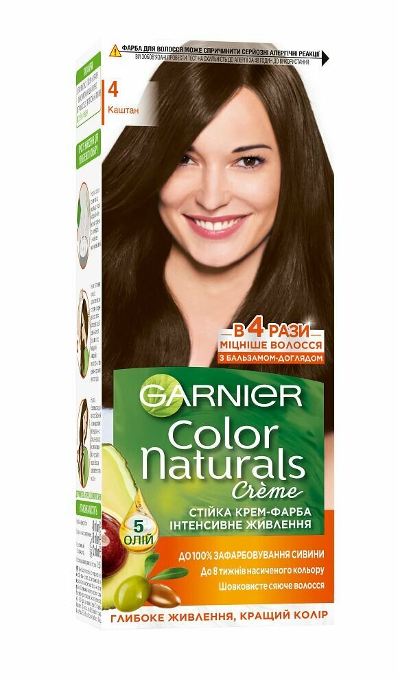 Крем-краска для волос, Garnier, Color Naturals, 4 каштан, 110 мл