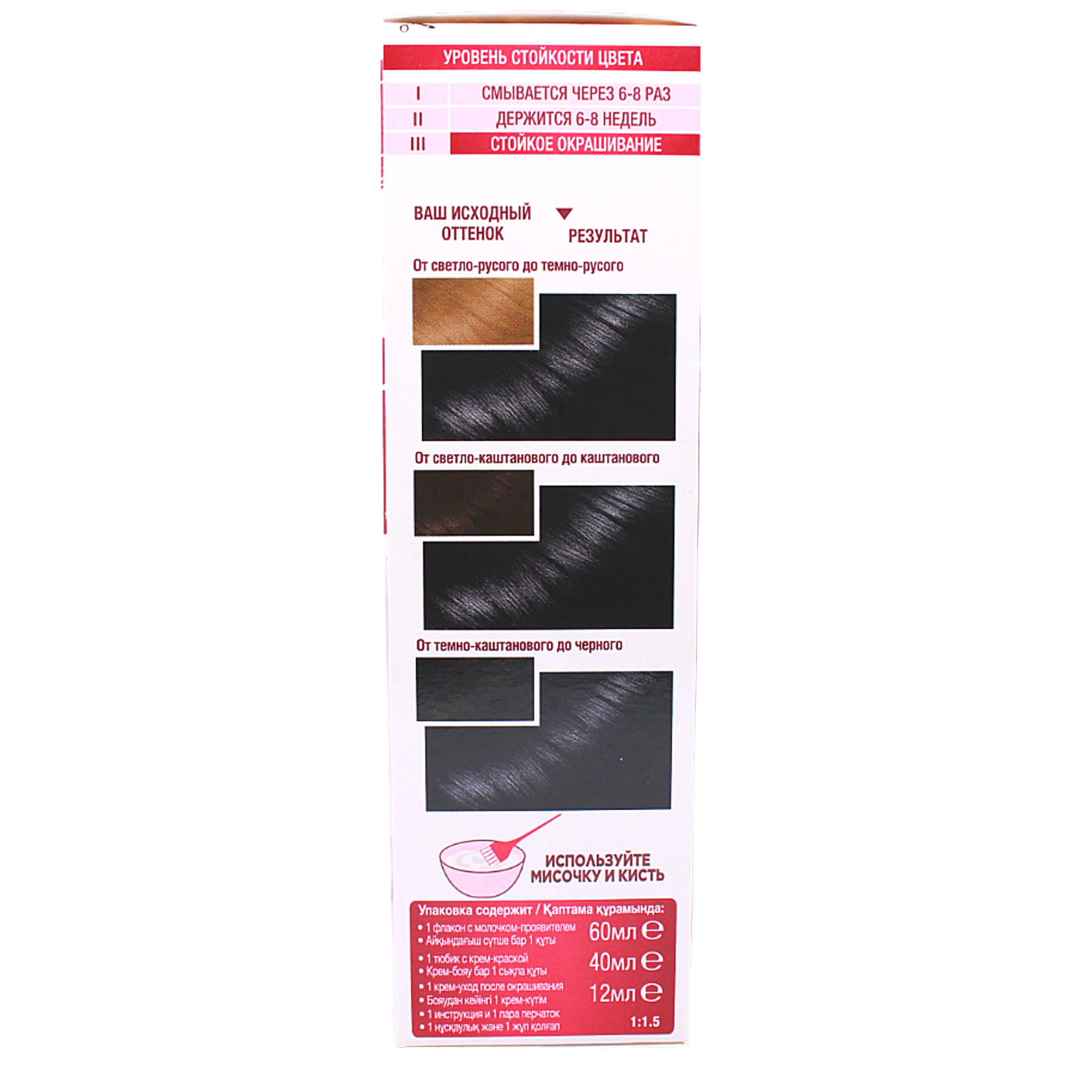 | Дополнительная информация | окислитель - 60 мл, краситель - 40 мл, крем-уод - 10 мл |