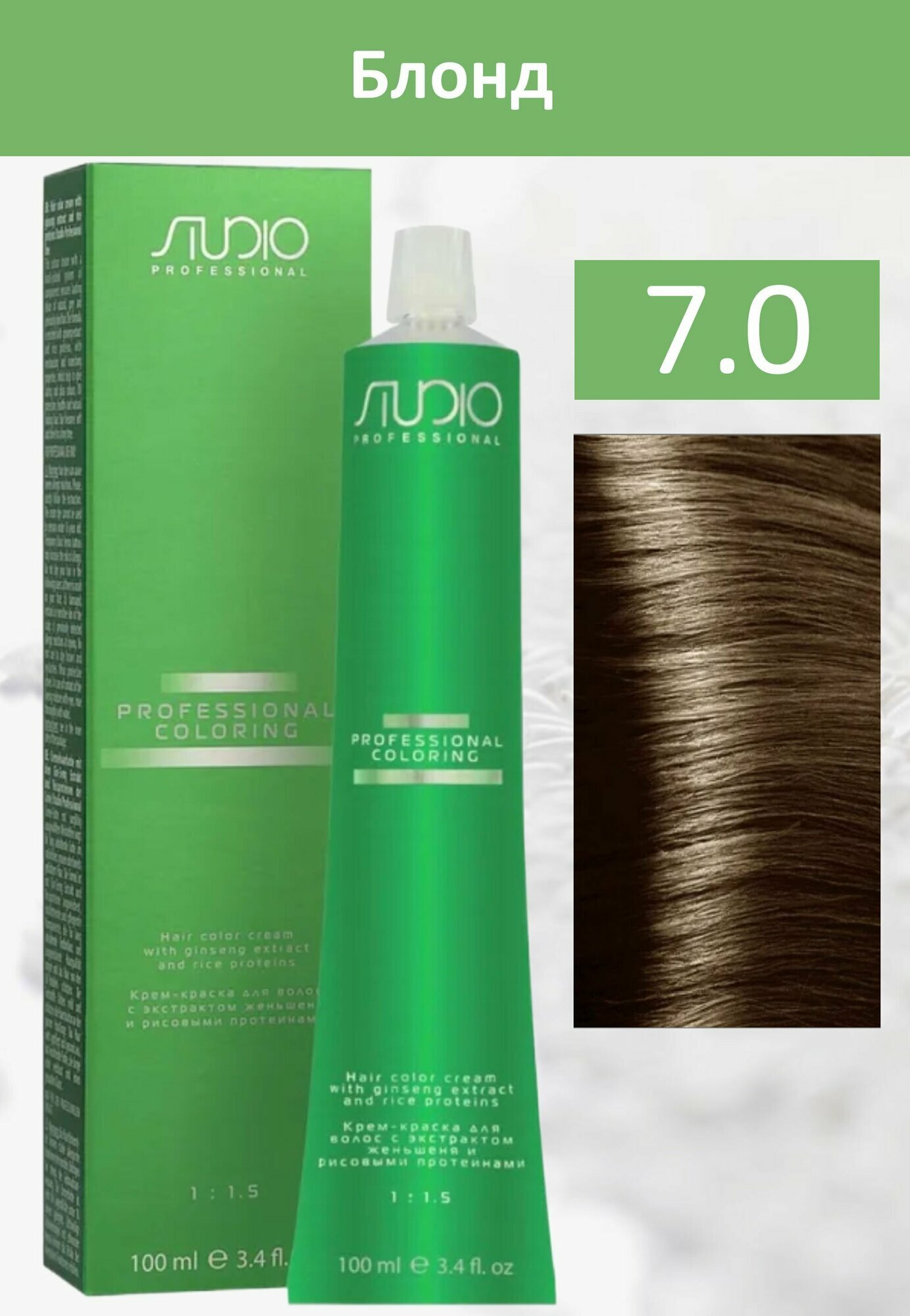 Купить Kapous Studio Professional Крем-краска для волос Studio, тон №7.0, Блонд, с рисовыми протеинами и экстрактом женьшеня, 100 мл