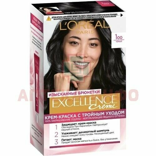 L'Oreal Paris Excellence стойкая крем-краска для волос, 1.00 Черный - 1 шт