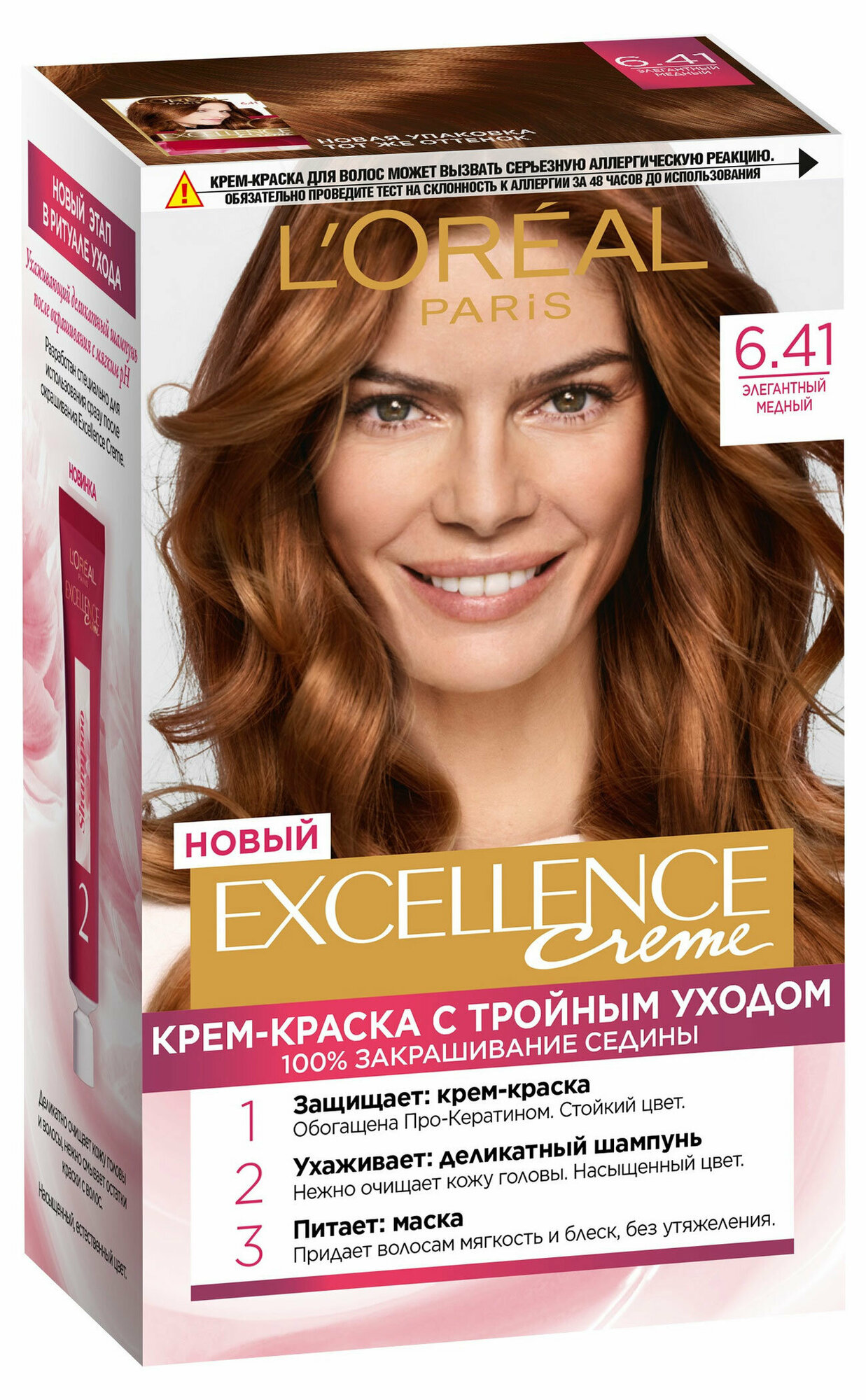Купить L'Oreal Paris Стойкая крем-краска для волос "Excellence", оттенок 6.41, Элегантный медный