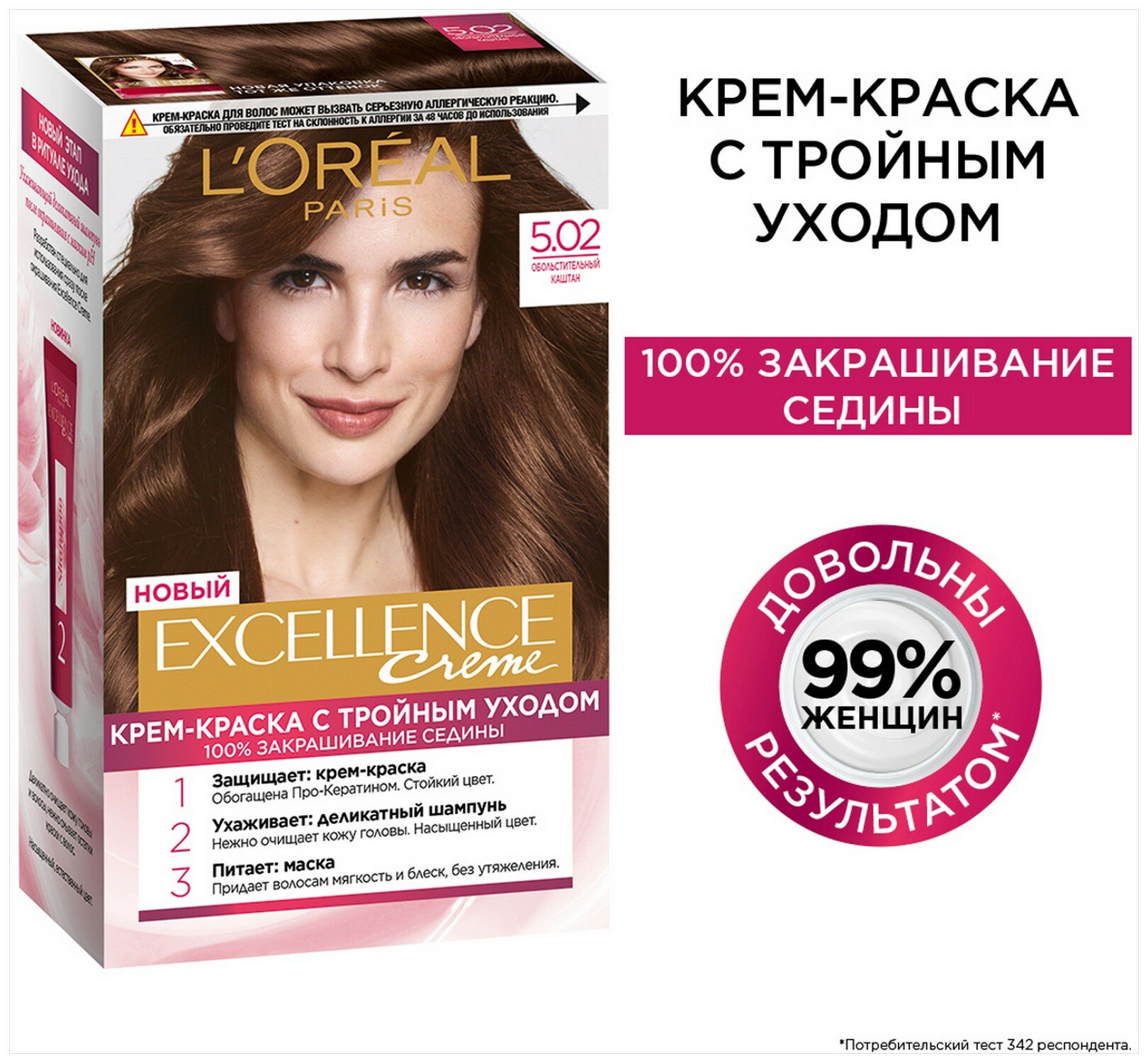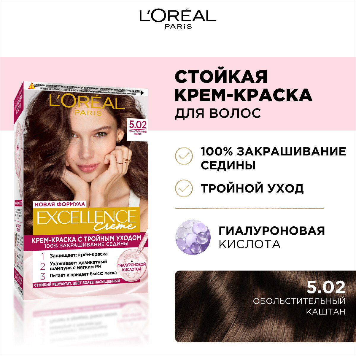 L'Oreal Paris Excellence стойкая крем-краска для волос, 4.02 Пленительный каштан - 1 шт