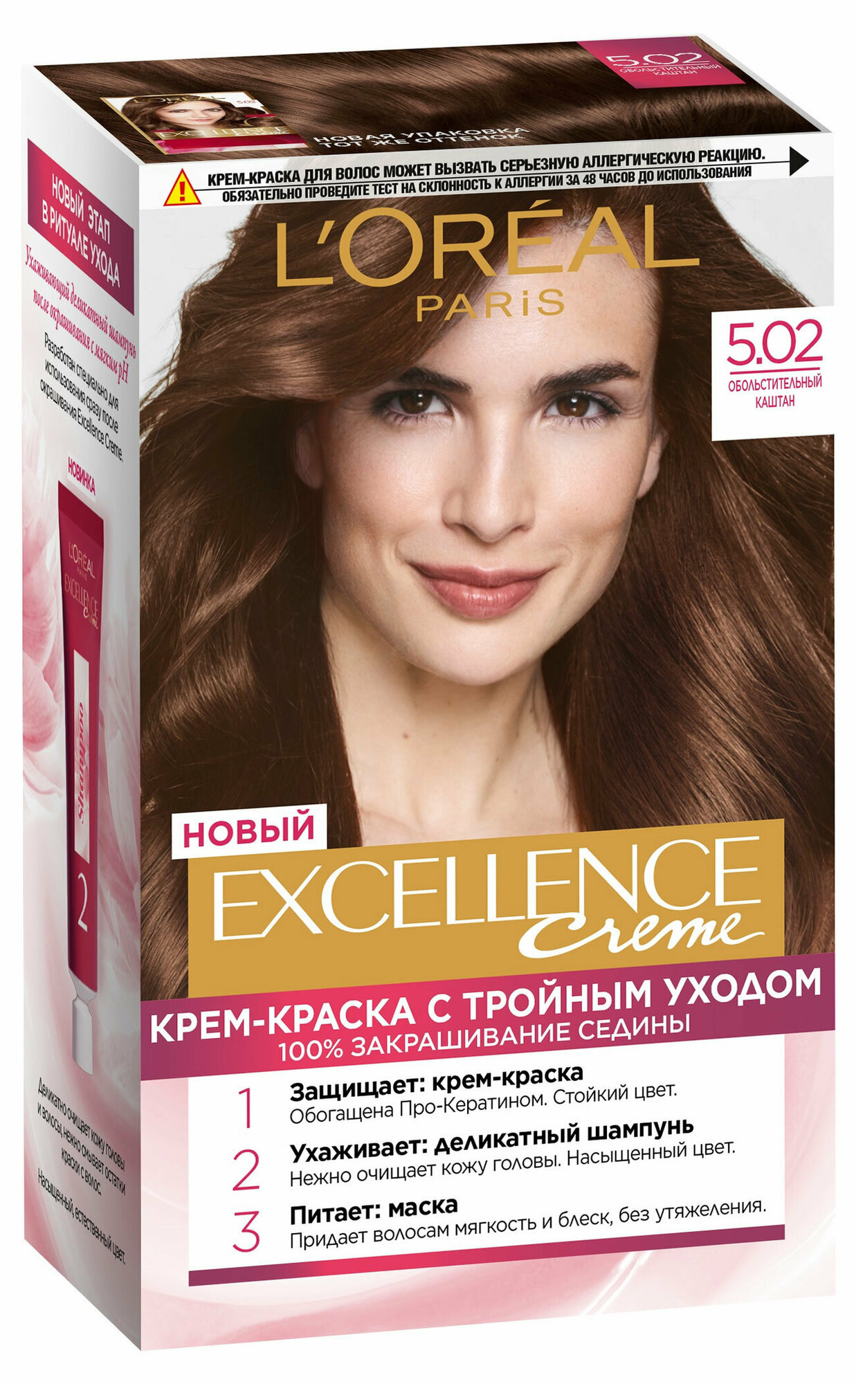 Краска для волос L'Oreal Paris Стойкая Excellence, тон 5.02 Обольстительный каштан