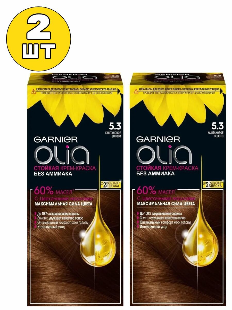 Купить GARNIER Крем-краска для волос безаммиачная Olia, №5.3 Каштановое золото - 2 штуки
