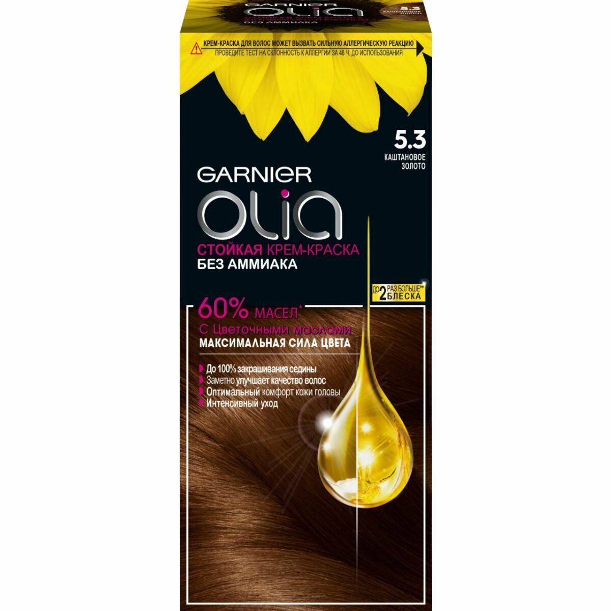 Garnier Стойкая крем-краска для волос "Olia" с цветочными маслами, без аммиака, оттенок 5.3 Каштановое золото, темно-коричневый, 110 мл.